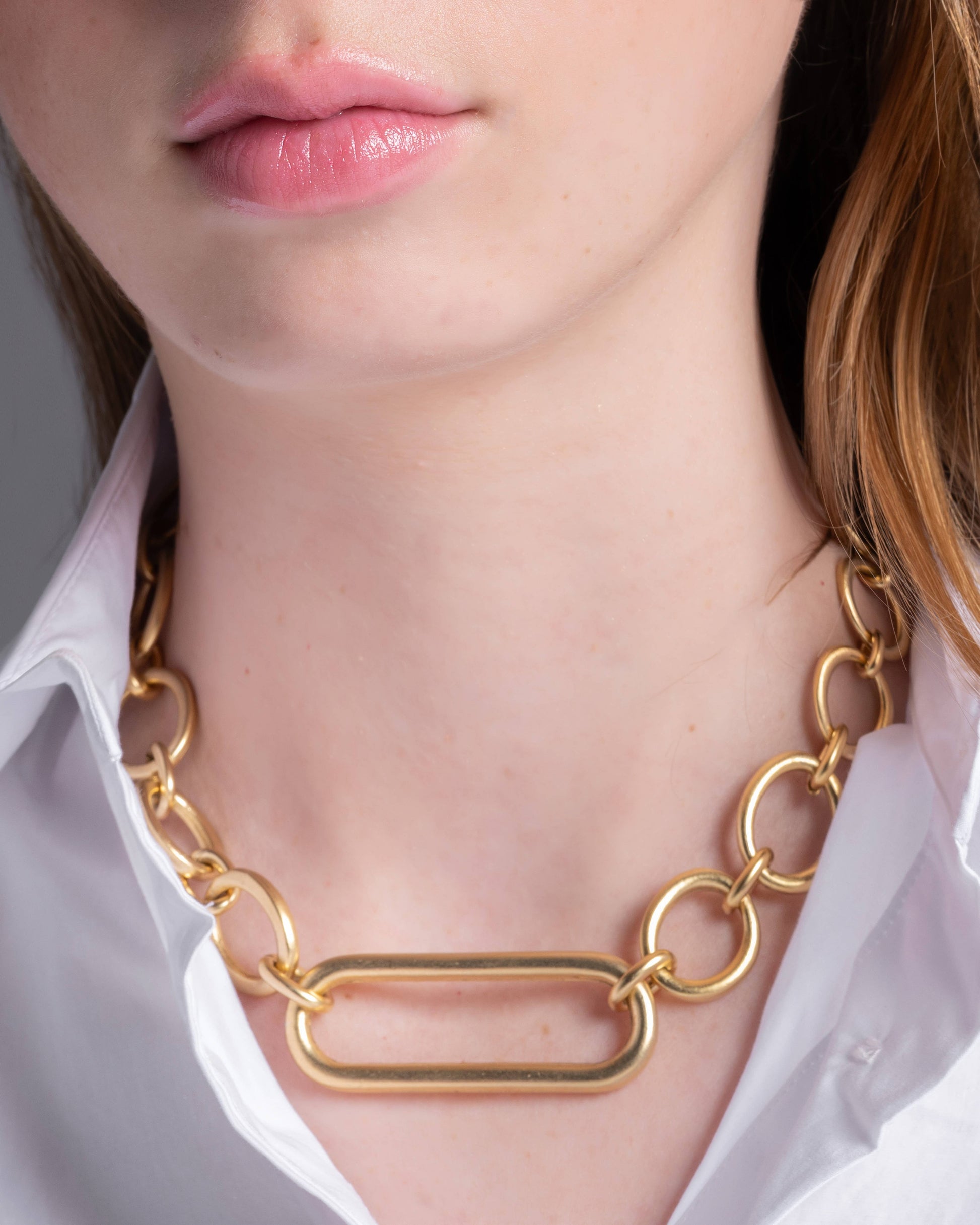 Oval Pendent Necklace. 22K Gold Plated Brass.