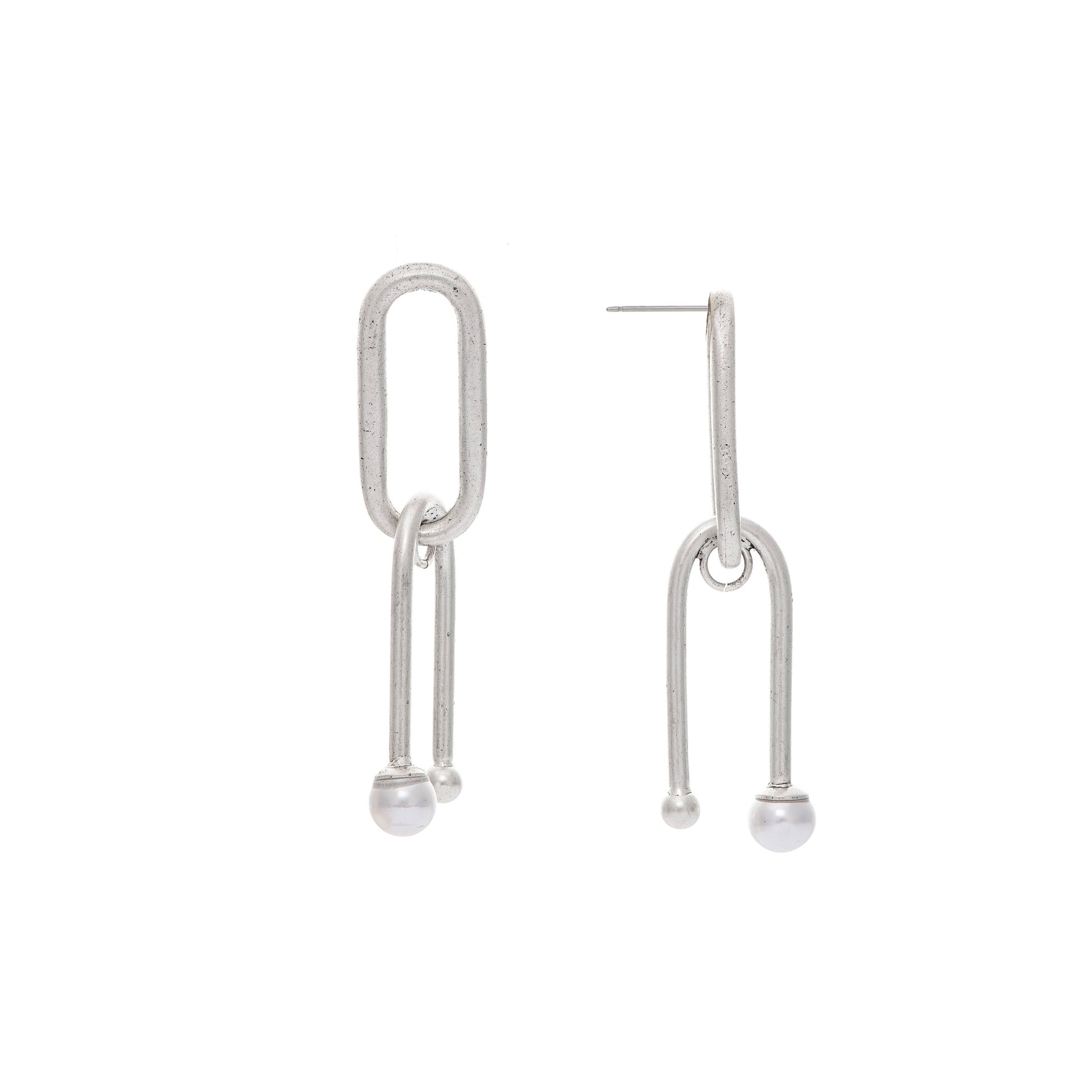 Architecturally designed to bring forth a work of art. A double rectangular hoop with drop down midnight blue accent pearls. 22K gold over brass and hand made in New York.