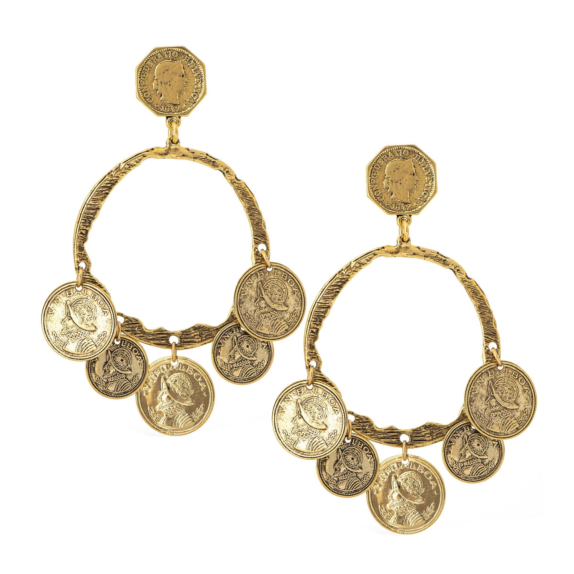 The Tresora is a super light weight vintage inspired Roman coin earring. 22K antique gold plated over brass. Hand crafted in New York